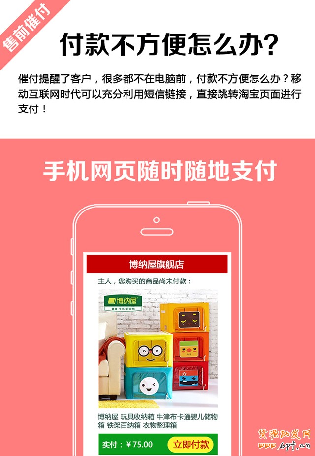 1、賣家可以很方便的把本店商品自定義分組,為每個分組商品制定專屬的催付文案,催付文案可以個性化定制,如側重付款后今天即可安排發貨、側重包郵、強調商品即將漲價、強調商品缺貨、強調有贈品等。