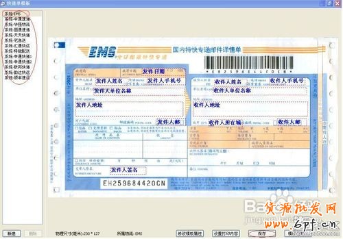 進入模板管理后選擇您所要發貨的快遞公司的快遞單模板,然后保存(下圖以“EMS”為例):