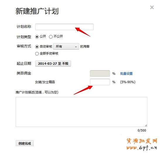 第六步,接著賣家就可以進(jìn)入到淘寶客推廣的頁面,進(jìn)入“推廣管理”,并新建推廣計(jì)劃,填寫好推廣計(jì)劃里面的信息,如計(jì)劃名稱,審核方式等等。具體內(nèi)容顯示如下: