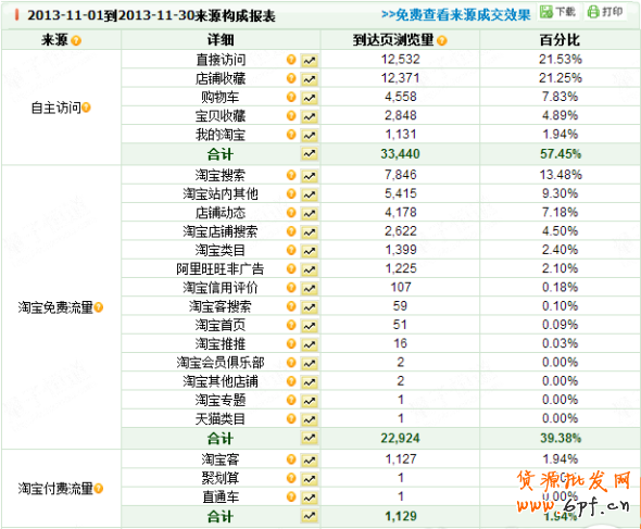 可以看出這個(gè)店鋪的流量大約60%的流量都是自主訪問流量,同時(shí)免費(fèi)流量40%左右,對(duì)很多賬戶來說這樣感覺很好,但是對(duì)這個(gè)繼續(xù)發(fā)展和轉(zhuǎn)變的店鋪,鉆展,直通車推廣勢(shì)在必行。