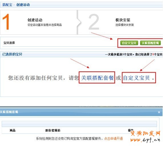 注意:點擊彈窗出現提示如上圖,親必須訂購官方搭配套餐,并且去創(chuàng)建搭配套餐才可以關聯(lián)搭配寶,所以,第一步訂購官方的搭配套餐很重要。