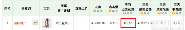 出價0.4,每天點(diǎn)擊量有13000個點(diǎn)擊,平均點(diǎn)擊花費(fèi)0.39.定向出價0.4就能引來那么大的流量,所以說這款寶貝的隱性質(zhì)量得分非常的高。