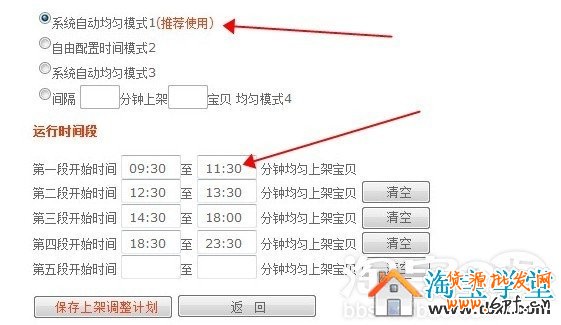 大家可以根據自己通過數據了解到的高峰期進行修改,上圖是系統默認的時間,新手還是建議使用系統的時間。而且建議使用模式1,均勻上架,其他模式有的是要自己去計算的。比如。你家現在又280個寶貝,你要把他分成7天,一天上架40個,這40個還要分配到高峰期時間段來上架,設置完的時間除于40,得出每幾分鐘上架一個寶貝,這樣比較麻煩,我也是新手,不建議新手使用。當所有計劃設置完成后,點擊保存上架調整計劃,系統就會生成計劃,工具吧好用就是寶貝不需要下架,系統會根據你設置的計劃自動給你安排下架時間和上架時間。看下圖。