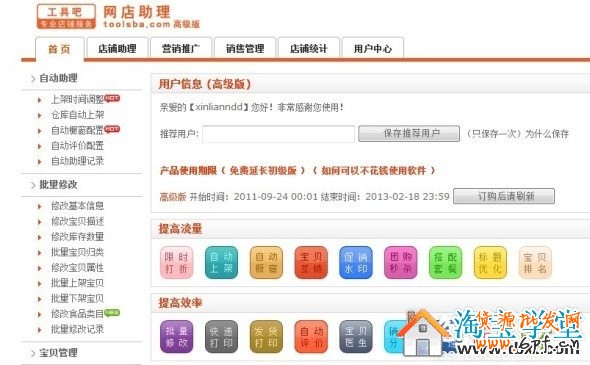 上面的方法是免費的關鍵詞捕捉,新手小賣家可以試試,我是個比較懶的人,同時也追求效率,在那么多店鋪管理的工具選擇下,我選擇了使用工具吧,這個工具匯集了網店管理的大多數功能,關鍵是還實惠。下面是工具吧的一些重點功能,如圖: