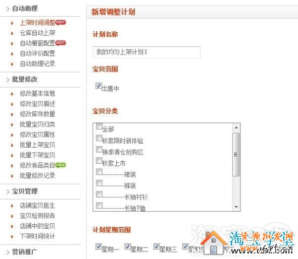 下面看看我的工具是怎么幫我完成的,首先要先建立計劃,按分類,按寶貝創建都可以