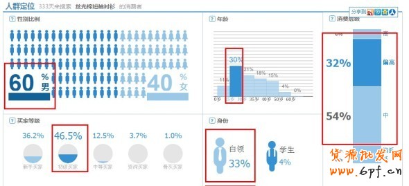 男女比例:3:2,大部分為初級買家,中年買家,大部分是白領,消費能力中高檔。于是定向推廣,就有針對性了~