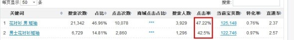 這2個詞直通車是默認同一個關鍵詞的哦,BUT 點擊率不一樣哦~~雖然直通車系統忽略空格,順序,但是這里面也折射出一個買家搜索習慣的不同哦。