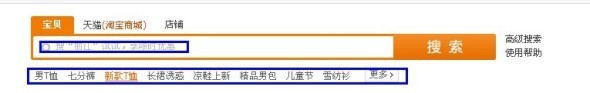 淘寶默認搜索框里面的詞。淘寶定期會根據季節、節日、重大活動等出來默認的提示搜索,搜索量和點擊量都很大。