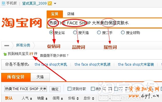 這種熱搜詞至少有幾萬個產品,設置這種關鍵詞對于小賣家來說很難有展現的機會。.我建議大家選擇精準度比較高的長尾詞。比如“女士補水保濕乳液”“ 男士控油泡沫洗面奶”。這種詞搜的人雖然沒有熱門詞那么多。但是客戶群非常精準。搜這些詞的人肯定是想買這類的產品。所以轉化率也相對高一點。而且這種詞的競爭力相比之下要小的多。我的經驗:關鍵詞=屬性關鍵詞+促銷關鍵詞+品牌關鍵詞 然后 ,根據需要,將能說明你寶貝的相關詞匯都找出來,然后進行組合,這個時候我們會發現,關鍵詞就不那么難找了 比如:熱賣THE FACE SHOP 大米美白保濕爽膚水