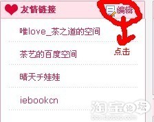 第四步:設置友情鏈接點編輯。會彈出一個對話框形式文本。鏈接名稱就寫你網店的店名例:茶話會,地址就寫你網店的網址然后點添加鏈接。