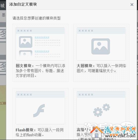 圖中有四個模塊可以選,但對我們有用的,也比較實用的只有“圖文模塊”和“大圖模塊”