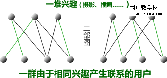 點點喊出的口號是“高質量內容社區”。輕博客中的用戶關系跟人人網等顯然不同,后者是赤裸裸的人際關系,前者隔著一層“興趣”。用戶之間沒有興趣,就無所謂關系,更不會有針對性的互動,便成不了社區。這種隔著一層興趣的二部圖(百科)關系,是比較弱得,國內這群用戶對這種弱關系買賬嗎?