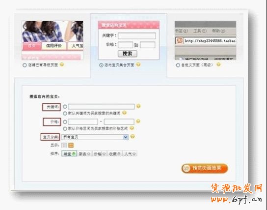 選擇店內寶貝集合頁面,可以通過自主搭配,按關鍵詞、價格和寶貝分類這三個條件生成您店鋪內的寶貝集合頁面