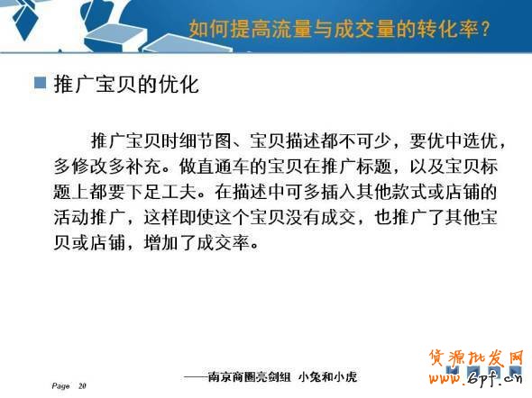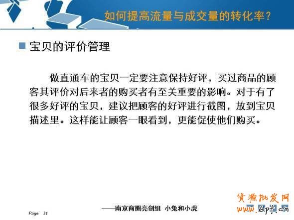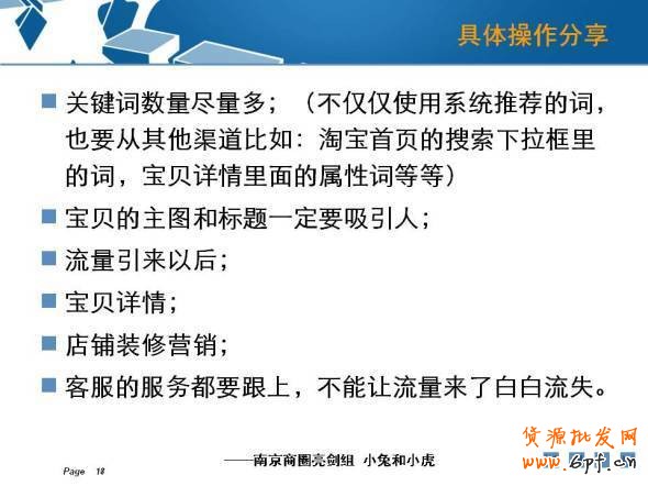 二.發展期:成長期要做的的就是快速的引流。每天觀察寶貝的瀏覽量和收藏量。觀察主推的幾個寶貝,選擇一款點擊量高的,轉化率高的一款寶貝作為爆款寶貝。選好關鍵詞,可以從淘寶推薦的關鍵詞;類目關鍵詞;淘寶下拉框;數據魔方等選擇關鍵詞。根據前面推的一段時間中,在直通車的關鍵詞上面選擇一些點擊量高的,相關性較高的,價格合理的一些關鍵詞作為主推的關鍵詞。還要做到優化寶貝詳情,寶貝詳情頁面中應該要排版清晰,突出賣點。還要穩定貨源,搶占市場,建立品牌偏好。