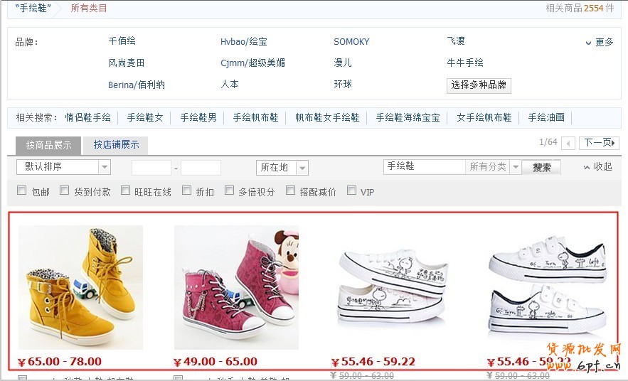 1、什么叫豆腐塊位置?我們以商城為例,搜索“手繪鞋”,紅色框中即是豆腐塊位置!