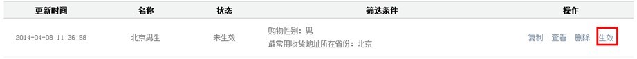 圈定人群后,需要點擊人群列表右側的生效按鈕后才能夠被使用,目前最多能生效10個人群