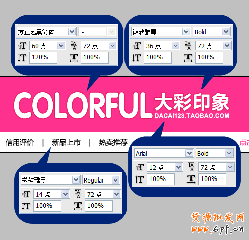 使用工具分別輸入文字,四個(gè)文字區(qū)域的設(shè)置分別如下圖