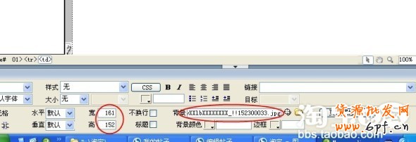 5個切片都更換完成后,再單擊這里。DW代碼區相應的地址會藍底顯示,此時再單擊藍底代碼前的<td>