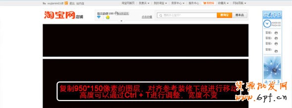 上面,我先是復(fù)制了某家店鋪的裝修,下面又新建一個(gè)店招大小的950*150像素的文件,復(fù)制到參考裝修上面,對齊店招部分,為的是精確地得到店招大小。