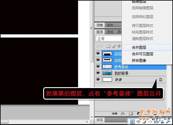 把做成純色的店招和參考圖層合并,目的是通過改變這個(gè)圖層的不透明度,輕松看到我們的店招,以及店招下的輪番等應(yīng)該做在什么位置,而無需過多度量。