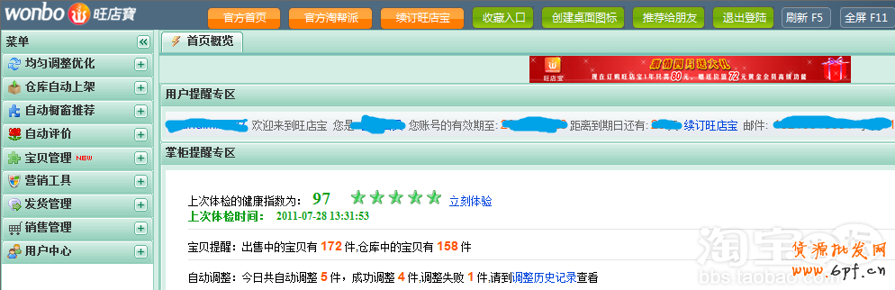 首先打開旺店寶,沒訂購的朋友可以去訂購哦!有一個月的免費試用,效果好不好試過才知道,不讓大家花冤枉錢!打開之后是這樣的。