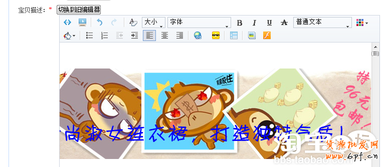 我們那會做的圖片就顯示出來了哦,如果想看具體在寶貝中的效果可以點擊下方的預覽,就在插入內容的下方,給大家看一下哈