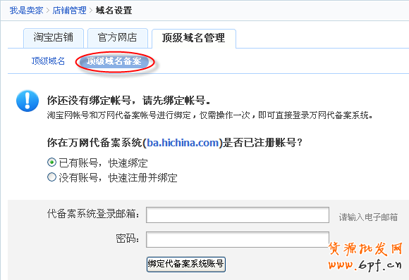 a、未綁定萬網賬號: 通過此頁面綁定淘寶賬號和萬網賬號,一次操作,即可在此頁面直接登錄萬網備案系統;