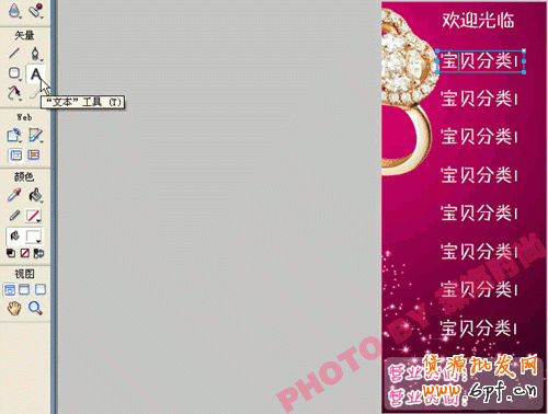 首先打開FW,打開一幅自己想要做分類背景的圖片,建議圖案不要太復雜花哨(設計能力強的朋友可以新建空白文檔自己設計整體樣式)。截出自己想要做背景的部分,寬