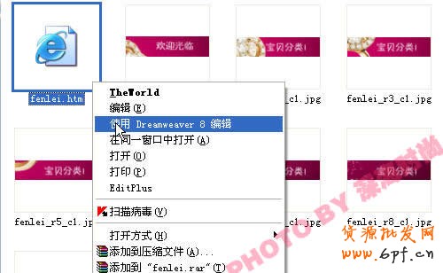 3.用Dreamweaver編輯代碼文件,為各分類圖片加對應鏈接。