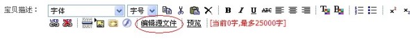 2.在發(fā)布寶貝頁面的編輯器中,點(diǎn)擊“編輯源文件”