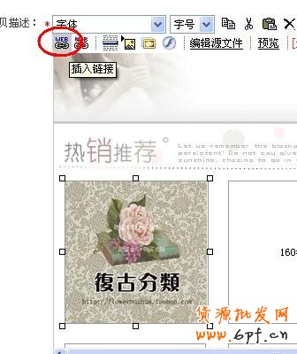 如描述中有促銷的小圖,請記得設(shè)置鏈接,選擇1張圖片,點(diǎn)擊插入鏈接的按鈕