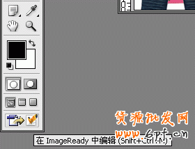 點PS工具欄上的轉入到imageready按鈕進入到imageready中進行GIF的制作。按鈕位置如下圖(或者直接按Ctrl+Shift+M也可進入)即工具欄下面最下一個按鈕。