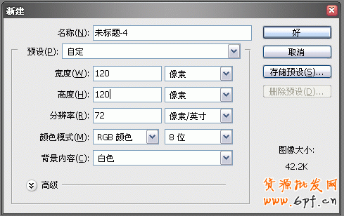 2、新建一張圖片,點PS頂部任務工具欄的【文件】——>【新建】(或者按Ctrl+N)這里我們主要針對淘寶來制作店標,而淘寶的店標可用尺寸為120*120,所以我們需要講圖片尺寸大小設置為120*120,單位選擇(像素),如下圖:
