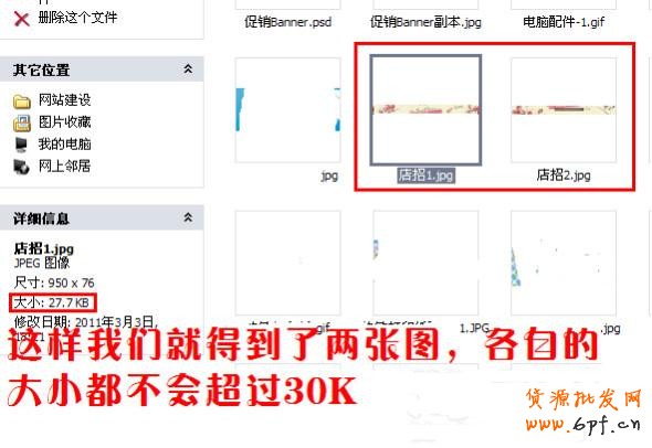 接下來我們要用到PS,即photoshop。因為在“管理素材”里面上傳我們自己的底圖,也就是我們的店招,大小不能超過30K。為了解決這個問題,我們要做的事情就是將原來的這個底圖截成兩份或者幾份。其實不一定要用PS,用系統(tǒng)自帶的畫圖也可以,但是系統(tǒng)的畫圖保存出來的圖片質(zhì)量沒有PS好 。