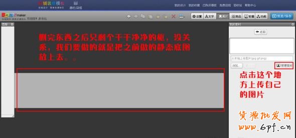 注意,剛才點開“管理素材”的時候,彈開的是一個新的窗口,也就是說,原來的窗口仍然在。在原來的那個窗口,如果上傳好的圖片沒有顯示出來,就刷新一下。若是跳轉(zhuǎn)回一開始的頁面,就重復剛才的動作,即點擊頁面上面藍色條里的“免費店招”——隨便找到一個免費店招,點“開始制作”——把原來的店招里的東西全部刪了,看回“圖片”——“我的素材”的頁面,自己上傳的圖片顯示出來了沒有?