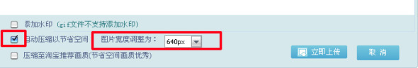 選擇這一項后,會出現“圖片寬度調整為”。后面是可以填的數字,這里就是可以上傳圖片大小的位置了,如果把后面的尺寸寫為“640PX”(