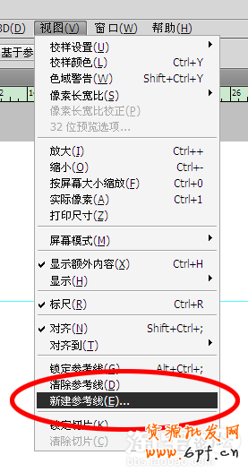 新建好之后我們就要對其進行分割,把它分成均勻的小塊,具體該分多大呢?大家想下,標準版的左側欄寬度是190px,那我們這里就剛好平均分成5列,至于高度可自己根據具體情況而定,我這里分成了3行。我們可以利用新建參考線進行分割,視圖→新建參考線,