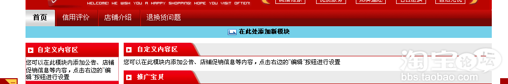 打開之后,我們只要復制里面的代碼放入淘寶的自定義模塊中就可以了,我們在淘寶編輯頁面左右各新建一個自定義模塊