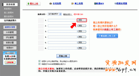 2.淘寶并不是所有的相冊都支持的:目前好多網絡相冊淘寶都不支持的,如:雅虎、QQ、163和sohu相冊等等。51相冊是淘寶支持的相冊之一,51相冊50M空間,免費使用,支持上傳大圖和GIF格式圖片,用于店鋪裝修也很不錯。