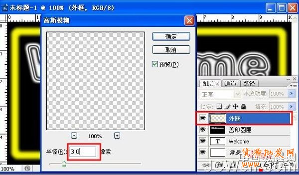 7、對外框圖層執(zhí)行濾鏡---模糊—高斯模糊,半徑2-4。
