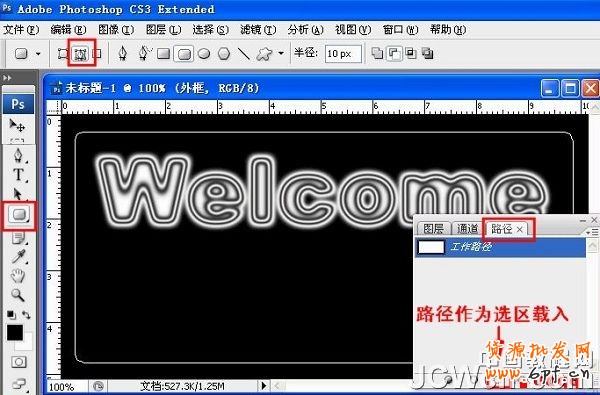 5、新建圖層命名為外框,選擇路徑,用圓角矩形工具畫一個矩形。 進入路徑,選擇將路徑作為選區(qū)載入,然后回到圖層面板。