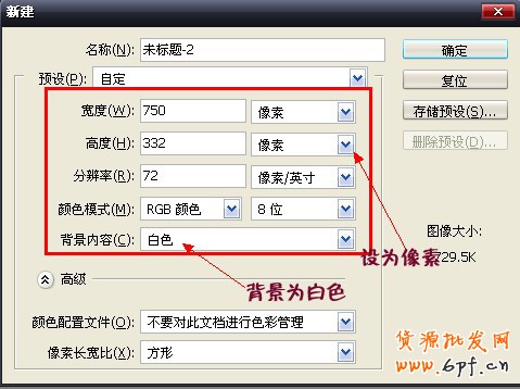 三:新建--設(shè)好大小屬性(我設(shè)的是750*332,剛好是整個模塊的大小)--確定,如下圖: