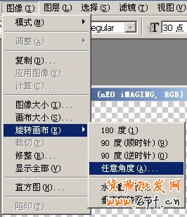還沒好哦,這個樣子的水印橫向太水平了,比較呆板,應(yīng)該把水印旋轉(zhuǎn)一個角度。旋轉(zhuǎn)的功能在菜單“圖像”-“旋轉(zhuǎn)畫布”-“任意角度”