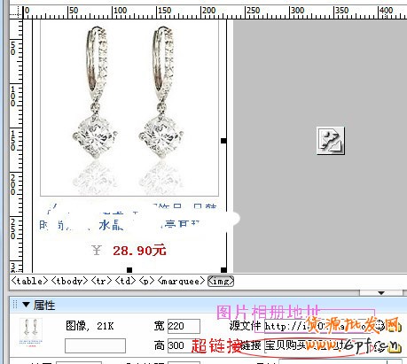 5、把之前做好的寶貝圖片傳上的網(wǎng)絡(luò)相冊地址復制一下,然后粘貼到下方中間的源文件(圖片地址1)的地方,圖片就會顯示出來,下面那個是填寫你寶貝購買的地址(超鏈接)