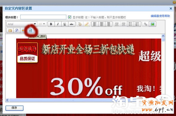 第七步,我們傳到圖片空間的圖片地址和要鏈接到的寶貝地址插入代碼中,同時設(shè)置展示圖片的高度和寬度,然后保存完成設(shè)置。