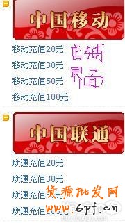 其中的地圖上的地區名和下面的充值都可以設置連接,即顧客直接點擊就可進入相應的充值頁面,方便快捷。