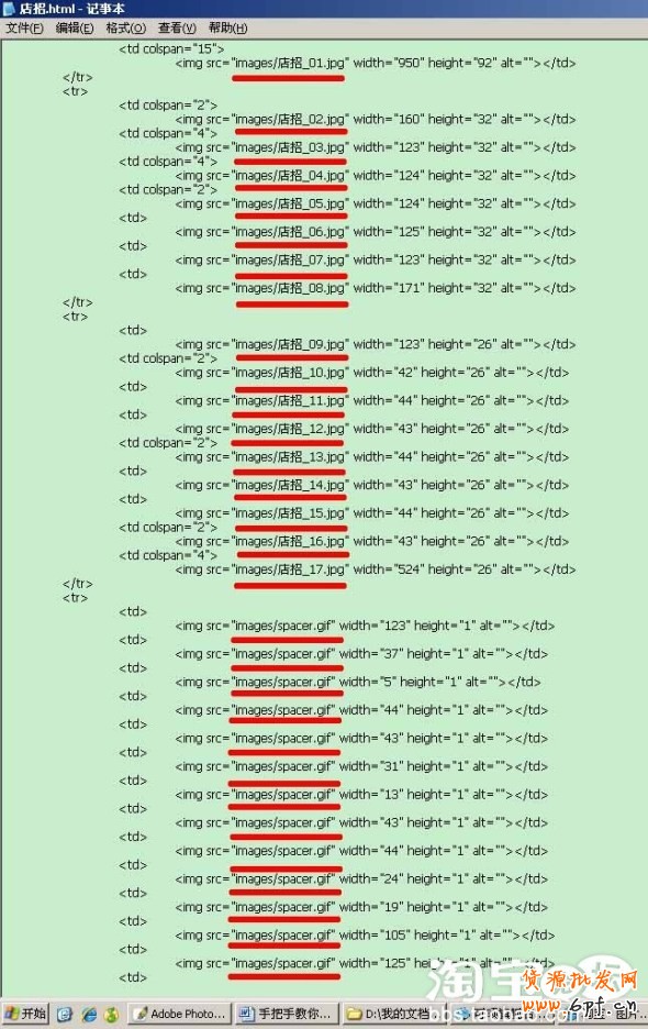 得到圖7和圖8中所示的“店招.html”文件和images文件夾里的18個小圖片,其它一個是墊片圖片。