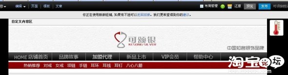 首先用Photoshop制一張950象素X150象素圖片(命名為“店招”),圖片內(nèi)容就是你店里的一些信息包括分類的導(dǎo)航,如果圖1所示: