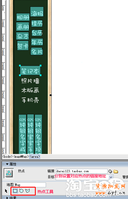 給圖片上面想要鏈接的地方加入熱點(diǎn)和鏈接