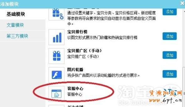 我們都知道,在店鋪首頁添加旺旺客服很重要。淘寶店鋪本身有旺旺客服的功能,但是有的時候會讓人大失所望,比如,淘寶添加客服模塊:“店鋪裝修”--“添加模塊”--“客服中心”:
